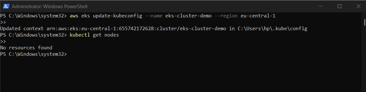 aws eks update-kubeconfig --name eks-cluster-demo --region eu-central-1