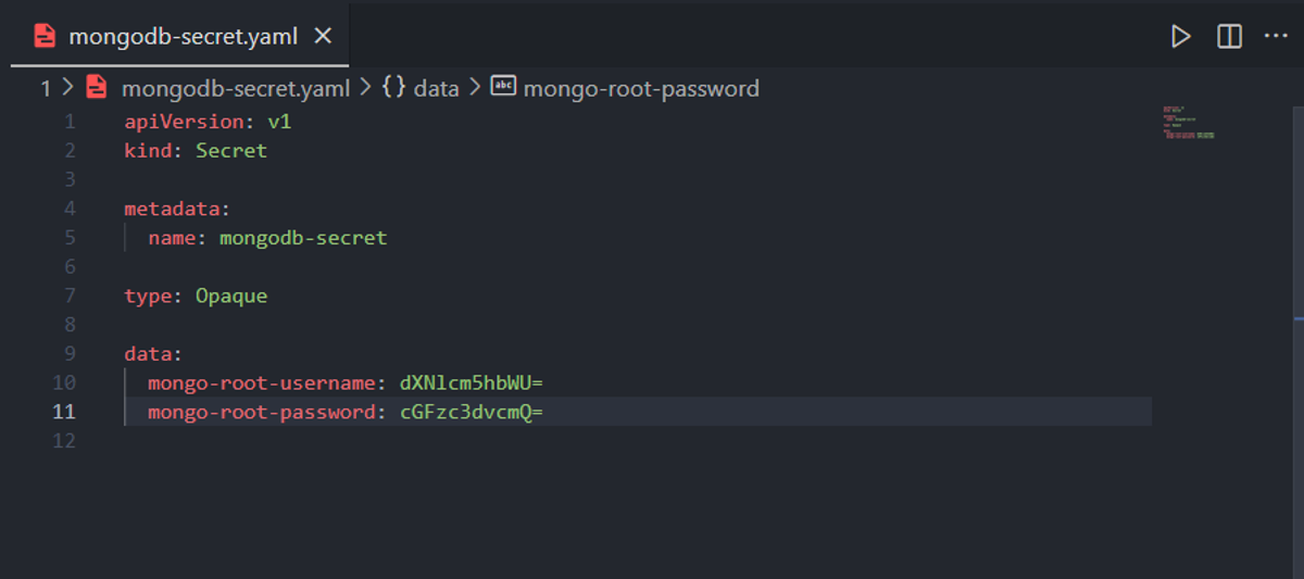 Firstly we create a mongodb-secret.yaml file which contains our mongodb root username and password. We abstract these credentials in this secret file for security purposes