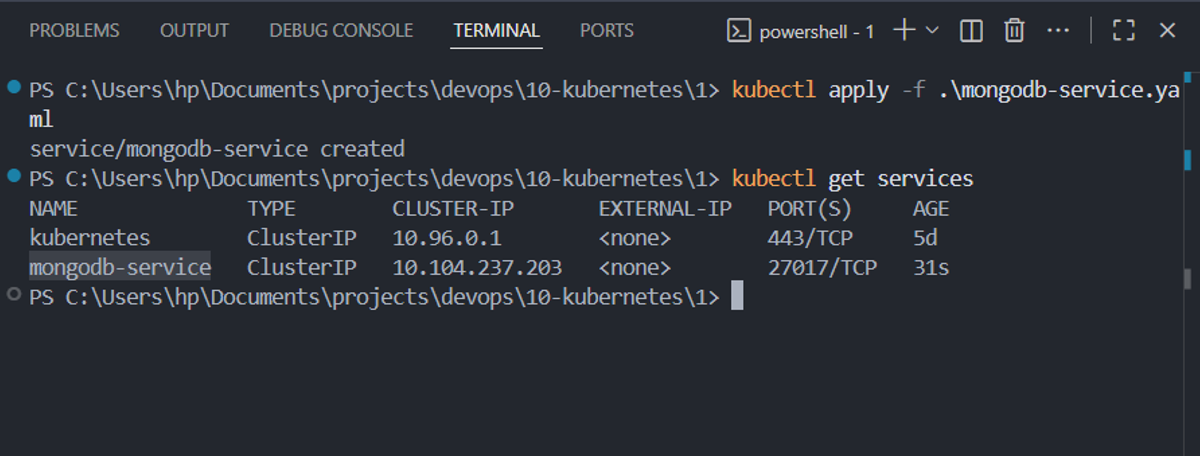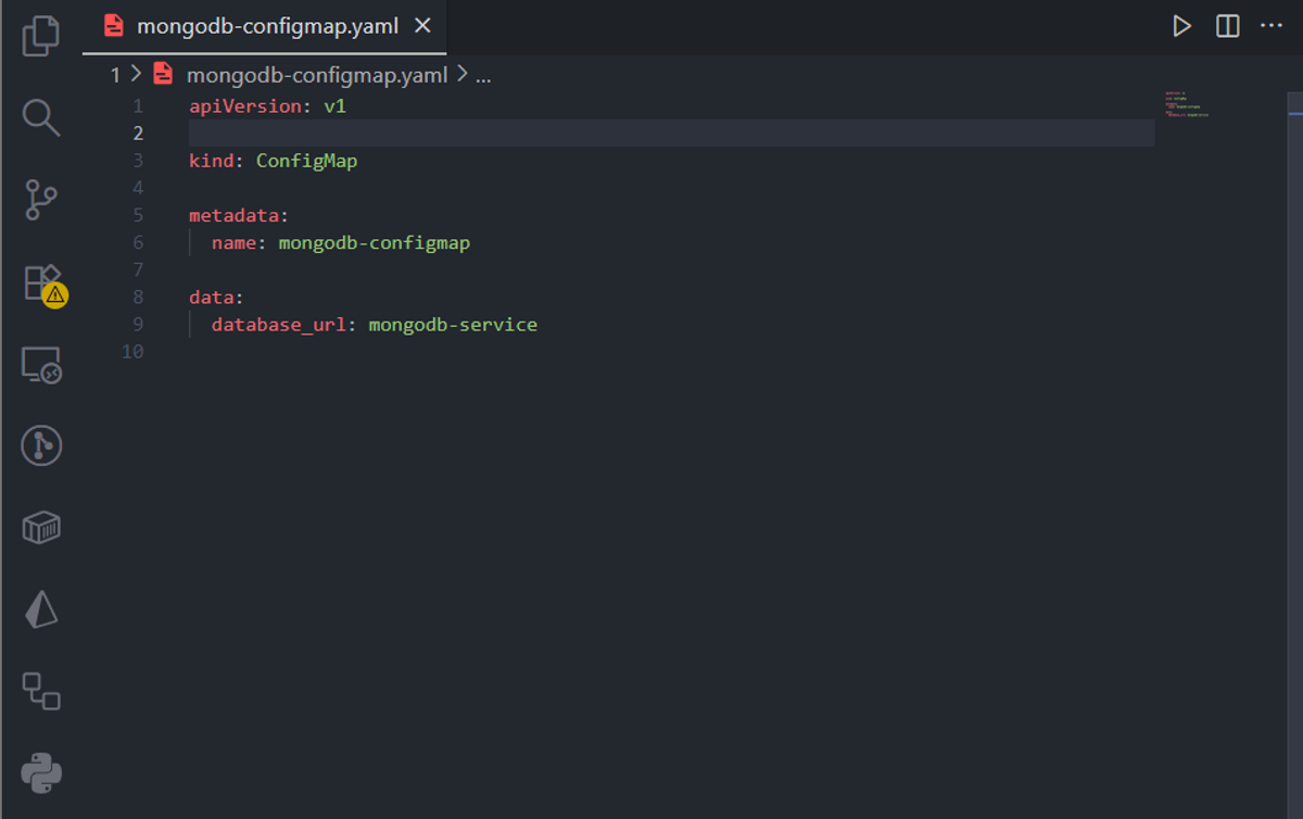 We will later reference this variable in mongo-express deployment in order for its pods to be able to connect to mongodb database