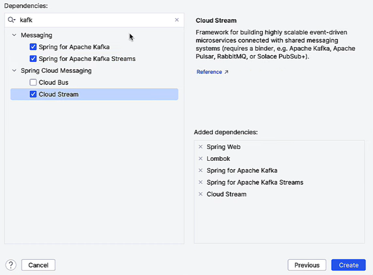 When I started this project in IntelliJ, I picked a few key Spring dependencies to make working with Kafka smooth and efficient.