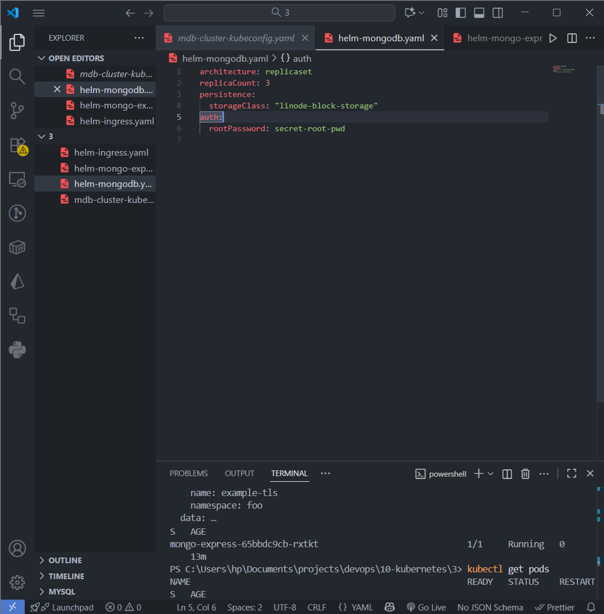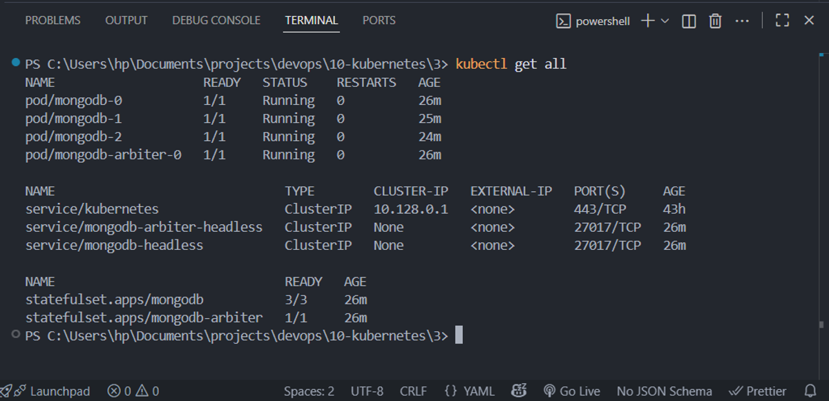 which created the underlying persistent volumes for my 3 mongodb pods, aswell as the pods themselves, and all other necessary k8s ressources.